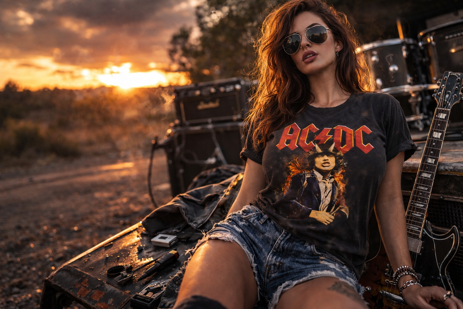 AC/DC Angus Spark Graphic T-Shirt – Black Vintage